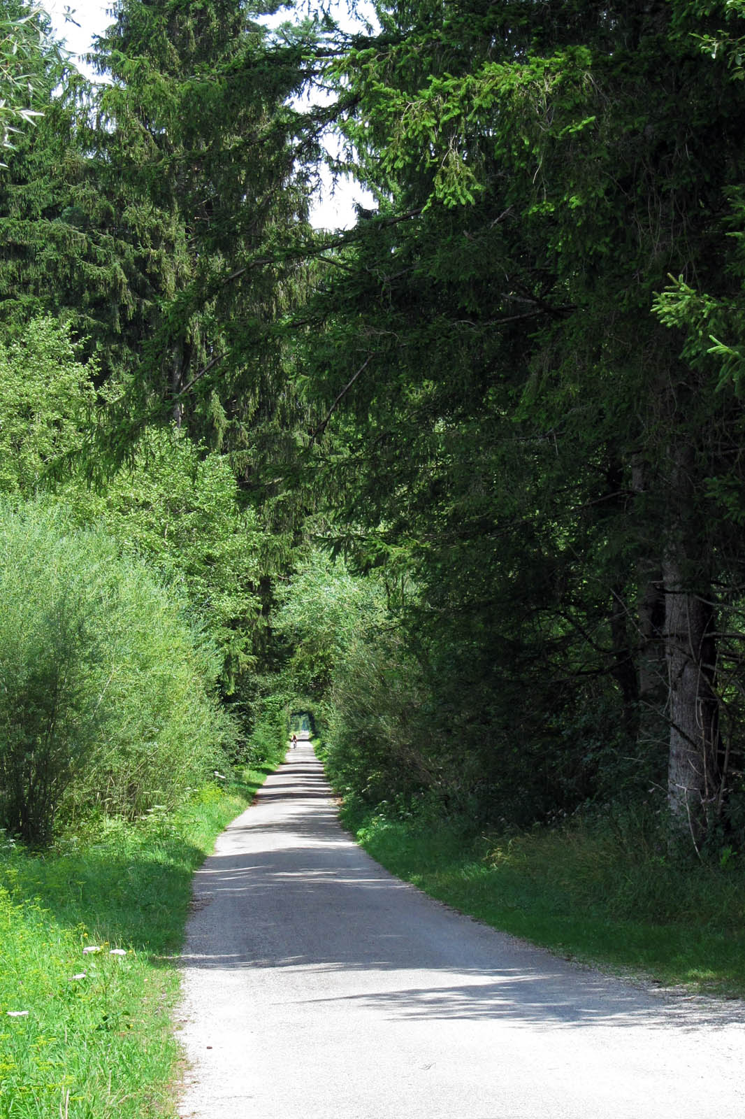 Von mir aus sind es etwa sieben Kilometer, bis ich aus dem Stadtgebiet raus und im Forstenrieder Park bin – einem sehr ausgedehnten Waldstück. Hier traf ich zum zweiten mal (nach dem Perlacher Forst) auf einen schnurgeraden Weg – mehr als sieben Kilometer geht es einfach nur geradeaus, natürlich ohne eine einzige Erhebung. So etwas kommt der Durchschnittsgeschwindigkeit sehr entgegen :-) Kurz nach dem Wald wird es dann ein Bisschen hügelig, wobei „hügelig“ sehr relativ ist. Gemessen an München sind diese Erhebungen wohl „Hügel“ – als ehemaliger Stuttgarter kann man darüber höchstens milde lächeln, mit dem Aufstieg aus dem Talkessel kann man das definitiv nicht vergleichen. Die Strecke taugt also auch für Menschen, die nicht dauernd im Sattel sitzen.