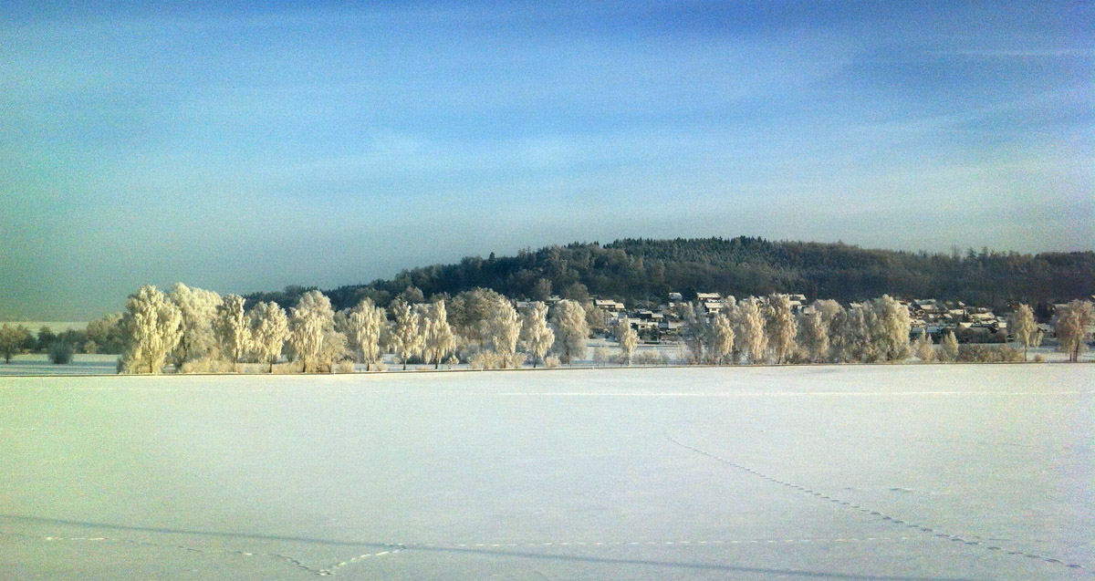 Für all jene unter euch, die der weißen Pracht nachweinen, hier einfach nur schnell ein Bild, das ich vergangene Woche zwischen Günzburg und Augsburg aus dem Zug Richtung München aufgenommen habe. Irgendwie hätte ich die Weihnachtstage lieber so als warm und nass…