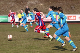 Im Sommer vergangenen Jahres kam ich zu der Ehre, die offiziellen Mannschafts- und Portraitfotos der zweiten Damenmannschaft des FC Bayern anfertigen zu dürfen. Man mag es einerseits ein Wenig befremdlich finden, dass dieser nicht gerade als ärmlich verschriene Verein für solche Gelegenheiten keine Profis parat hat (oder wenigstens welche einkauft), sondern auf den Kollegen (sprich: mich) eines ehrenamtlich Mitarbeitenden zurückgreift. Andererseits werde ich mich darüber sicher nicht beschweren, denn es hat schlicht und ergreifend einen Haufen Spaß gemacht. Den potentiellen Proll- und Angebe-Faktor mal ganz außen vor gelassen :-)