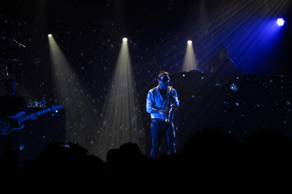 Das Publikum: eine lustige Mischung zwischen geschätzt 16 („Yeah! Party!“) und 50 („Yes! Ausflippen ohne Fremdschämen!“). Die Band: Herr Füreder zwischen seinen beiden Macbooks (der Trend geht also eindeutig zum Zweit-Macbook, das muss ich mir merken ;-) und diverser sonstiger Technik, dazu ein Schlagzeuger, ein Gitarrist und Bassist in Personalunion, zwei Bläser und eine Sängerin. Ich war sehr gespannt, wie sich diese Musik, vermutlich weitgehend am Rechner und mit Hilfe diverser Sampler entstanden, wohl auf eine beinahe komplette Bandbesetzung übertragen lassen und wie das Zusammenspiel zwischen den eher unflexiblen Tonspuren oder -fragmenten aus dem Rechner und den restlichen Musikern wohl klappen würde.Ziemlich perfekt, um es kurz zu machen. Das Fehlen eines zweiten Menschen für die Saiteninstrumente machte schnell klar, dass je nach Stücke entweder die Thematik „Bass“ oder eben „Gitarre“ zu hundert Prozent den digitalen Helfern zuzuschreiben war – beim ganzen Rest konnte zumindest ich nicht sagen, was davon nun live war und was aus der Konserve kam. Schlussendlich spielte das auch keine sonderlich große Rolle – denn das, was die Musiker auf der Bühne ablieferten, würde ich schlicht als grandios bezeichnen. Vor allem die beiden Bläser waren extrem gut. Geboten wurden rund 100 Minuten Vollgas-Musik ohne Verschnaufpause (und das, obwohl man eigentlich auch einige sehr gechillte Stücke im Programm hat, die zum Durchatmen hin und wieder recht wünschenswert gewesen wären) . Und das klingt dann etwa so: