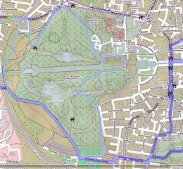 Wenn ich ihn mit Pasing vergleiche, dann hat er den Charme, dass man wirklich einmal schön im Kreis laufen kann (das sind dann 7,5km) und nicht zwingend den gleichen Weg wieder zurücklaufen muss. Auf der anderen Seite war mein erster Versuch allerdings auch ein Bisschen unromantisch. Der ganze Park ist von einer knapp über zwei Meter hohen Mauer umgeben. Und da ich anfangs nicht wusste, dass es alle paar hundert Meter ein sogenanntes „Schlupftor“ gibt, durch das man ins Innere des Parks kommt, bin ich eben den ersten Teil der Strecke immer an der Mauer entlang gerannt. Da hält sich der Ausblicks-Faktor doch einigermaßen in Grenzen.