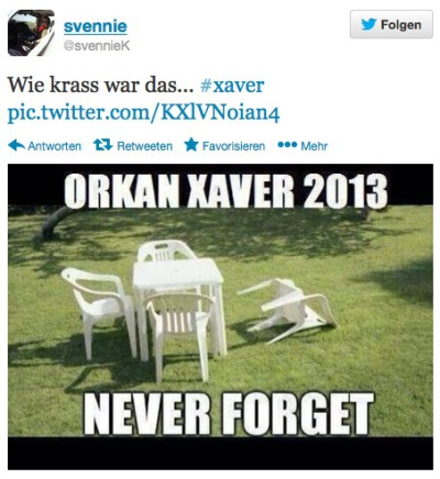 This made my day Ich liebe das Internet. Und Twitter. von Phi • 7. Dezember 2013 • 0 KommentareHier kurz zwei Tweets, über die ich gestern im Lauf des Tages sehr lachen musste. Es ist immer wieder erstaunlich, wie schnell irgendwelche Menschen in Anbetracht irgendwelcher Ereignisse auf irgendwelche ziemlich witzigen bis schrägen Ideen kommen…