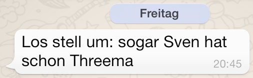 In diesem Sinne: Ich wäre dann mal bei Threema.