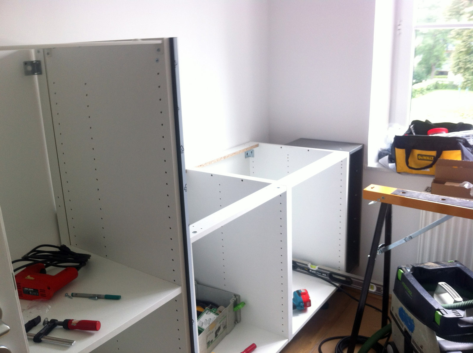 Zum Glück hatte ich mit meiner gewählten IKEA-Küche viel von eben jenem. Ich habe sie zusammen mit einer Mitarbeiterin komplett bei IKEA geplant und sie hat sich darum gekümmert, dass ich die Sachen geliefert und einen Aufbautermin bekomme, der nicht monatelang in der Zukunft liegt. Gut, sowas kostet Geld – aber im Nachhinein betrachtet, war es das mehr als wert. Allein die Tatsache, dass ich eine Mitarbeiterin drei Stunden für mich allein hatte war viel Wert. Und dass die nette Dame anschließend die ausgespuckte Teileliste der Planungssoftware mal eben in etlichen Posten von Hand korrigiert hat, lässt mich daran zweifeln, dass man als Normalsterblicher eine Küche bei IKEA planen kann, bei der hinterher nicht diverse falsche oder unnötige Teile in der Beschaffungsliste auftauchen. Außerdem konnte sie mir auf Anhieb sagen, welche Teile vorrätig waren und welche sie bestellen muss (das waren zwei und sie hat das nebenher erledigt). Ich weiß, dass viele Probleme mit IKEA-Möbeln und Küchen haben – ich dagegen hatte diesbezüglich offenbar jede Menge Glück. Die Beratung und Planung war super, der Liefertermin hat geklappt, alle Einzelteile wurde geliefert (es waren exakt 100 Pakete oder Päckchen) und genau zum vereinbarten Termin standen zwei nette Monteure vor der Tür, die das Ding aufgebaut haben. Und wie. Man merkte recht deutlich, dass das nicht die erste Küche war, die sie montiert haben – der Grundaufbau vollzog sich in einer Geschwindigkeit, dass mir beinahe die Ohren schlackerten (dass sie nicht ein einziges mal in irgendeine Anleitung schauen mussten versteht sich da schon fast von selbst).