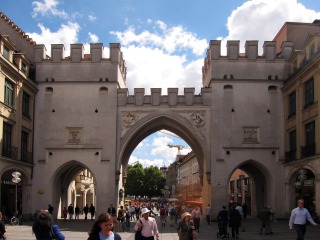 Aus rein praktischen Überlegungen heraus (böse Zungen mögen es auch schnöde Konsumlust nennen), habe ich damit begonnen, die Innenstadt unter die Lupe zu nehmen. Die U-Bahn vor der Haustür bringt mich innerhalb von 12 Minuten zum Stachus (der eigentlich Karlsplatz heißt), einem der zentralen Personenumschlagplätze innerhalb Münchens. Rein touristisch betrachtet, kommt man am Verweilen am beeindruckenden Brunnen nicht vorbei, zumindest sofern man einen der begehrten Sitzgelegenheiten ergattern kann. Gönnt man sich zuvor bei McDonalds ein Getränk seiner Wahl, kann man dies übrigens mit dem Wissen tun, in einer der weltweit umsatzstärksten Filialen gewesen zu sein – angeblich belegte sie 2006 die Führungsposition. Wer es am Brunnen lieber literarisch mag, der gehe halt neben an zu Hugendubel und erwerbe ein kluges Buch. Einen München-Führer beispielsweise.