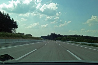Klar, in diesem quasi menschenleeren Landstrich ist ja auch genug Platz und lästige Anwohnerproteste sind kaum zu befürchten. Dennoch schon irgendwie merkwürdig, dass sich im Gegensatz zu beispielsweise Stuttgart 21 kein einziger Umweltschützer hier je an einen Baum gekettet hat oder das Gefährden nie zuvor wahrgenommener Käfer beklagt wurde, als man diese gleich zu hunderten rodete, um den nötigen Platz zu schaffen. Aber das ist ja auch irgendwie logisch, der Umweltschützer von heute will ja auch schnell zur nächsten Demo fahren können, da braucht man gute, möglichst staufreie Straßen, also immer fleißig weg mit dem Gehölz! Aber wehe es legt jemand Hand an einen liebgewonnen Baum in irgendeinem Park). Diese Bauweise führt erfreulicher Weise zu relativ wenig Behinderungen des Verkehrsflusses (ich stand in der kompletten Zeit lediglich drei mal innerhalb der Baustelle im Stau) und das Tempo, in dem die neue Strecke aus dem Boden gestampft wurde, ist beeindruckend. Schon während der letzten Fahrten zeichnete sich ab, dass das erste Teilstück wohl demnächst fertig sein würde – und gestern war es soweit. Ich konnte die ersten geschätzt 15 Kilometern auf der neuen Strecke zurücklegen. Da man dort über weite Strecken 120 ud nicht mehr 80 fahren darf, verkürzt das die Durchfahrtszeit enorm – bisher musste man rund eine halbe Stunde einplanen, jetzt sind es zehn bis fünfzehn Minuten weniger, je nach Verkehrslage und persönlicher Bereitschaft Geschwindigkeitsbegrenzungen zu ignorieren.Ich bin gespannt, wie lange es dauert bis die restlichen Kilometer freigegeben werden und wie schnell oder langsam dann die zweiten drei Spuren entstehen. Es bleibt spannend – angeblich wird noch bis 2015 gebuddelt…