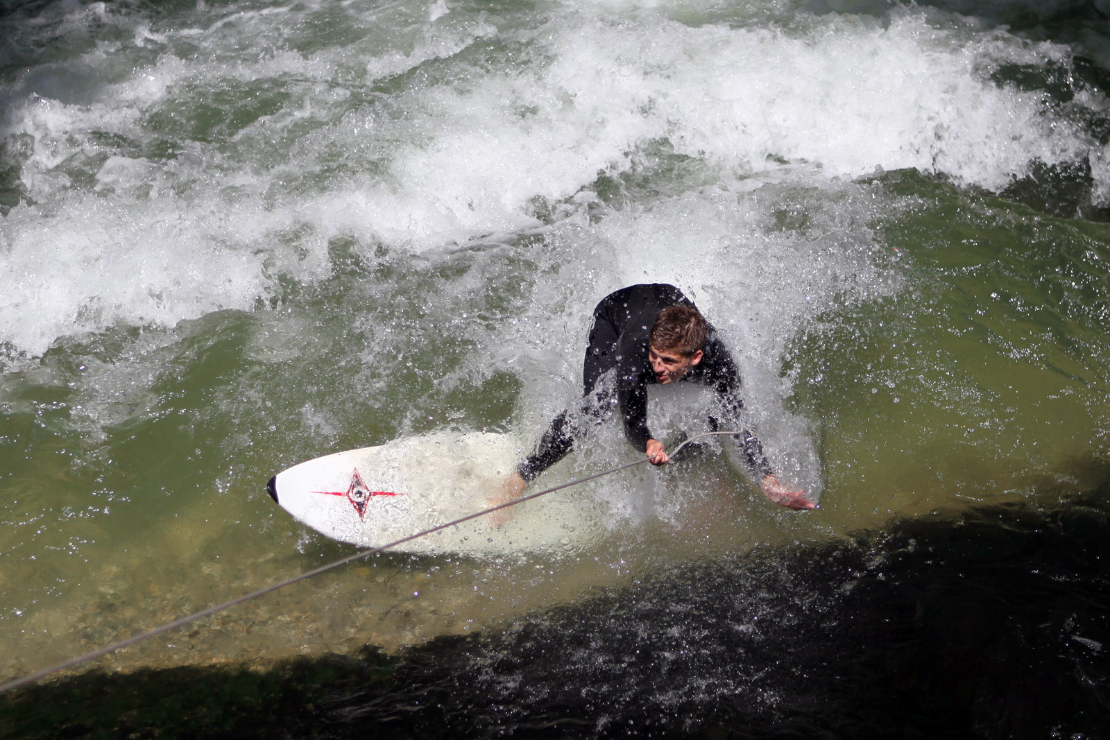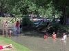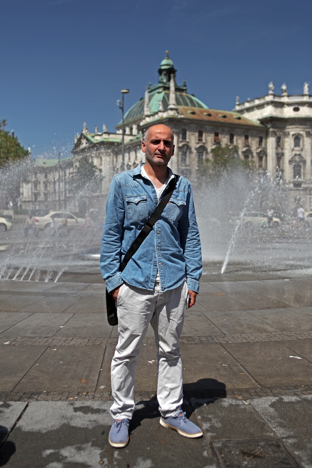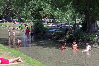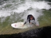 Weiter die Kaufinger Straße entlang Richtung Marienplatz, das Rathaus bewundern (mindestens fünf Bilder davon machen, aber aufpassen, dabei keinen Japaner über den Haufen zu rennen – check!). Von dort weiter Richtung Odeonsplatz, an der Staatskanzlei vorbei zum Englischen Garten marschieren. Hier zuerst die Wellenreiter am Eisbach vorzeigen und knipsen (check!). Blöd nur, dass die richtig guten von denen vermutlich wegen der Hitze oder des niedrigen Wasserstandes keine Lust hatten und das Feld den Anfängern überlassen haben. Deren touristisches Vorzeigepotential hält sich dummerweise einigermaßen in Grenzen. Dementsprechend sind wir dann recht schnell weiter in den Englischen Garten, „Nackerte“ am Eisbach bestaunen. Wobei hier erste Verbesserungsvorschläge aufkamen: man könnte die dort anzutreffenden Nackedeis doch bitte mal durch welche ersetzen, die man als Tourist auch begaffen will (einer Petition in dieser Richtung würde ich mich anschließen, das Dargebotene hatte schon beinahe was von Gammelfleisch). Dennoch ist der Park vorzeigetechnisch immer ein voller Erfolg, den findet jeder Besucher toll.Zwischenstation: Eisessen im Uni-Viertel, danach weiter im Park spazieren und dringend den ersten Biergarten ansteuern. Maß trinken (nix check, weder Navid noch ich, stattdessen gab’s Radler und Apfelschorle) und dann wurde es auch schon fast Zeit und auf die Socken Richtung Wiener Platz zu machen, da wir dort im nächsten Biergarten verabredet waren. Das allerdings dann doch lieber per Bahn und nicht zu Fuß. In dem haben wir dann den restlichen Spätnachmittag bis Frühabend verbracht, bayrische Lebensart studieren (check!).