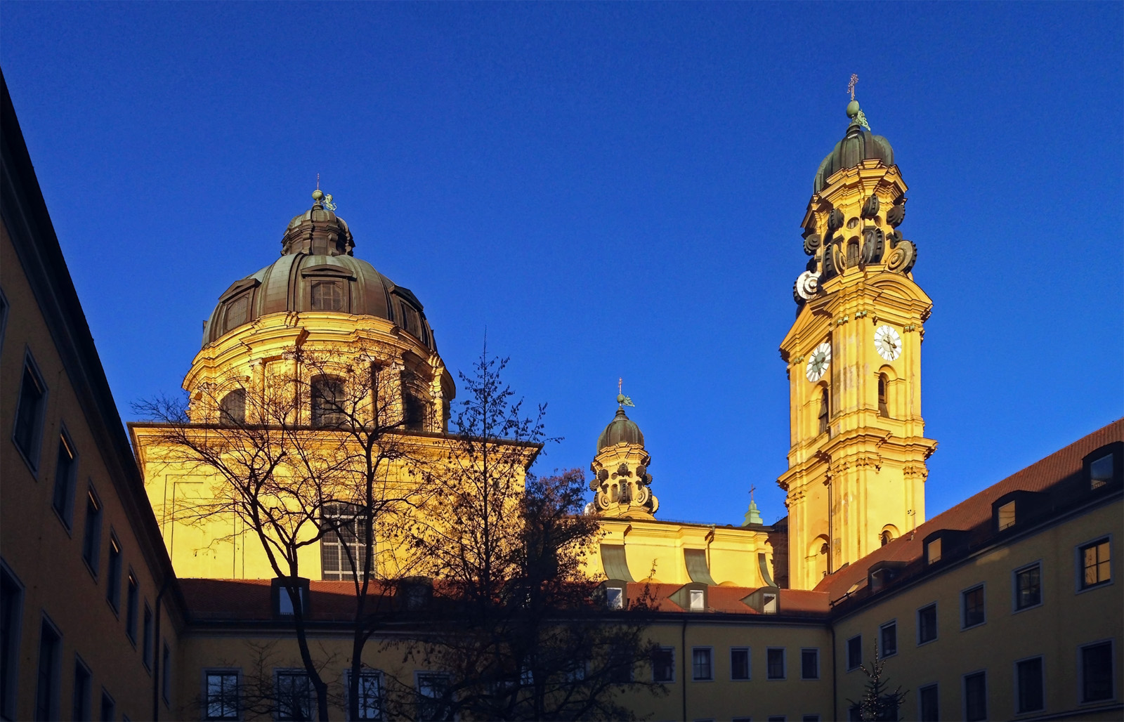 War es dann auch. Von der Theresienwiese Richtung Hauptbahnhof, dort einen Kaffee holen, dann weiter über den Stachus gen Odeonsplatz, einmal durch den Theatinerhof (die Theatinerkirche habe ich schon x-fach photographiert, den zugehörigen Hof allerdings noch nie, dabei ist der eigentlich recht sehenswert) und von dort zum Wittelsbacherplatz. Man könnte sich ja kurz den mittelalterlichen Weihnachtsmarkt ansehen. Schon wieder eine ganz schlechte Idee – gegen den Füllstand dieses Weihnachtsmarktes war Tollwood schon beinahe öd und leer. Aber wo wir schonmal da waren, haben wir wenigstens einen Kinderpunsch genossen, so können wir wenigstens behaupten, dabei gewesen zu sein. Allerdings nur kurz, denn auch hier haben die natürlichen Fluchtinstinkte dann doch relativ schnell eingesetzt. Dennoch: den Weihnachtsmarkt dort kann ich durchaus empfehlen, er ist wirklich süß – allerdings eben nicht unter den gegebenen Umständen. Ein Besuch um, sagen wir, 18 Uhr an einem schmuddelig verregneten Mittwoch könnte dagegen ziemlich entspannt ablaufen.