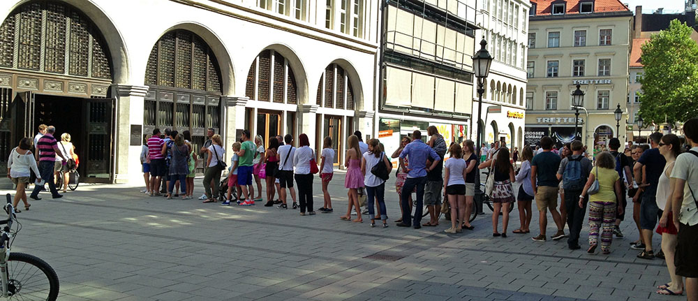 Ich war heute morgen (es dürfte so gegen elf gewesen sein) kurz in der Innenstadt, um ein paar Einkäufe zu erledigen. Schlenderte vom Sendlinger Tor Richtung Kaufinger Straße und dachte mir nichts Böses – bis mir plötzlich der Weg versperrt war. Nuja, zumindest mehr oder weniger. Quer über die Straße zog sich eine Warteschlange aus Jugendlichen oder Menschen, die sich offenbar noch dieser Kategorie zurechnen. Starbesuch? Justin Bieber auf Promo-Tour? Nein, die Antwort ist viel profaner. Die standen einfach nur geduldig an, um in die örtliche Niederlassung von Abercrombie & Fitch hineingelassen zu werden. Von einem Türsteher. Immer schön in kleinen Gruppen – und bitte nur so viele, wie kurz zuvor das Gebäude verlassen hatten. Ja, man muss schon einiges erdulden, wenn man hip sein möchte.